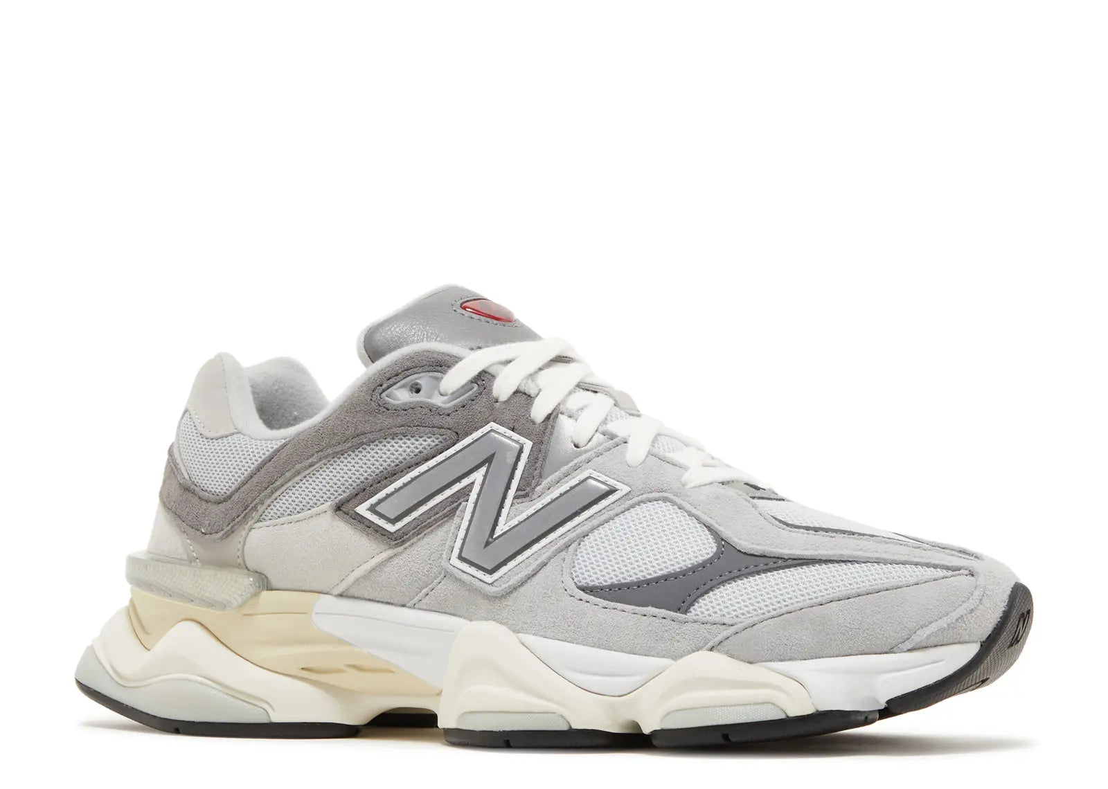 Los zapatos New Balance 9060 'Raincloud' tienen múltiples tonos de gris adornando la parte superior, compuesto por malla transpirable, anclada por superposiciones de ante y cuero sintético. Una insignia NB 9060 con joyas interrumpe el diseño monocromático, mientras que una entresuela ABZORB de gran tamaño se combina con la amortiguación del talón SBS para una sensación de felpa bajo los pies. La suela de goma negra tiene un patrón de diamantes original inspirado en el icónico 860.